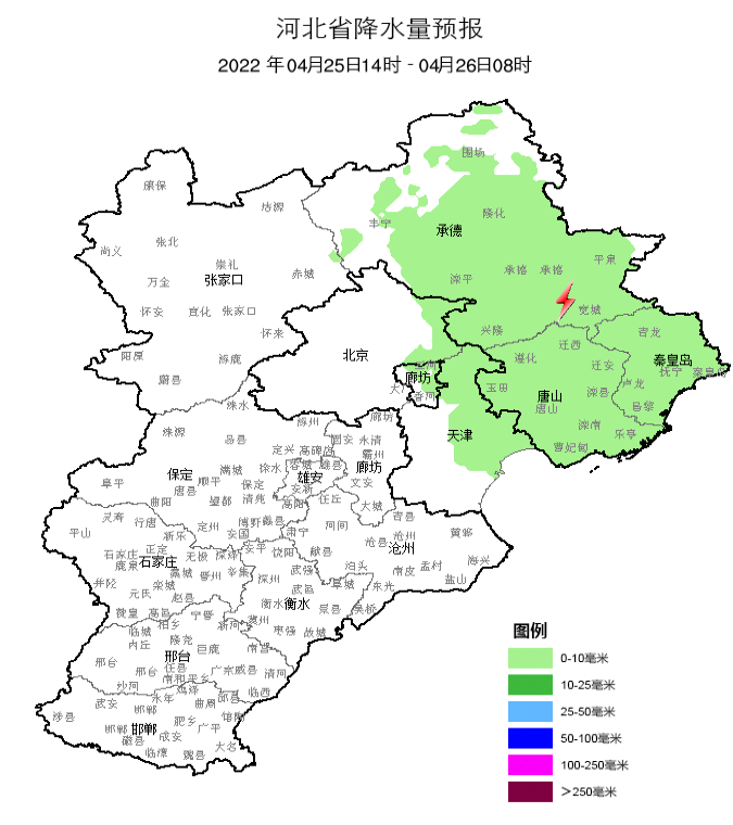 今天夜间,承德、唐山、秦皇岛、廊坊北部晴转阴有雷阵雨或阵雨,雷雨时局地伴有短时大风等强对流天气,个别地点有冰雹, 其他地区晴间多云。