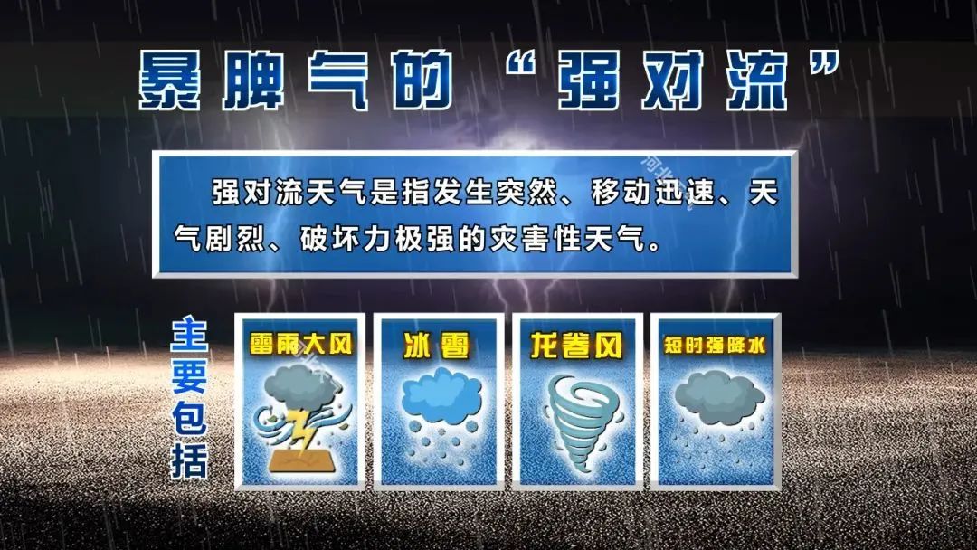 强对流天气是指发生突然、生命史短、天气剧烈、破坏力强并常常伴有短时强降水、雷雨大风、龙卷风、冰雹等现象的灾害性天气。