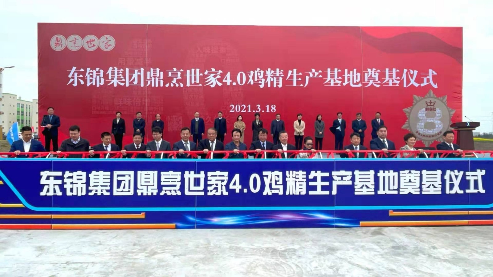 2021年03月18日,东锦食品集团“鼎烹世家4.0鸡精兴化产业基地奠基仪式”在中国调味品之都江苏兴化隆重召开。世界鲜,兴化造;中国味,世界尝。为加快中国鲜味产业健康发展,东锦食品集团第三次创业的“鼎烹世家4.0鸡精”重点项目与江苏兴化政府达成战略合作,共筑“中华食谷、大国美味”。